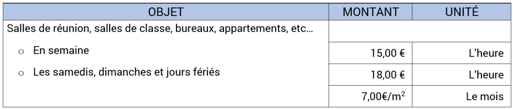 L’INJS de Bordeaux n’étant pas assujetti à la TVA, tous ces tarifs sont exprimés nets de taxes. Aucune facturation mentionnant une TVA déductible ne pourra être réalisée.