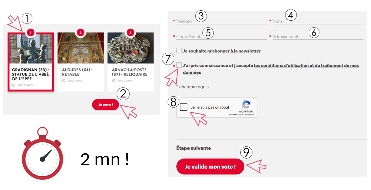 Pour trouver les 12.600€ nécessaires à cette restauration, nous avons participé au concours du plus grand musée de France et avons été retenus pour la phase finale, qui consiste en un vote public départageant les trois finalistes de la région Nouvelle-Aquitaine. Sur la période du 3 au 23 mars 2025, nous allons avoir besoin d’un grand nombre de votes en faveur de notre projet. On vous communiquera le lien vers l’adresse de vote dès que possible. Vous pouvez voter depuis un ordinateur, une tablette ou un téléphone portable mais chaque appareil ne peut voter qu’une seule fois.