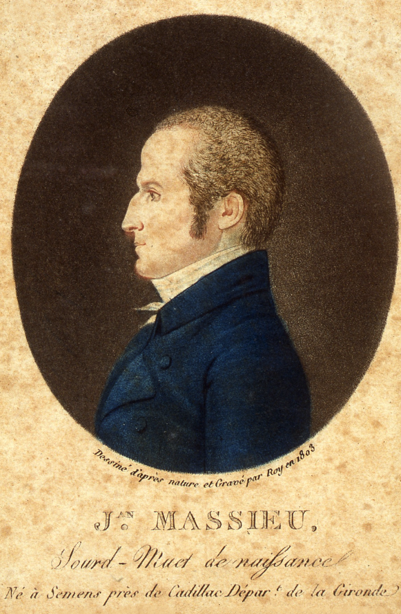 Jean Massieu est né sourd le 2 septembre 1772 à Semens, en Gironde. Il est le cinquième d’une fratrie de six enfants, (deux frères et trois sœurs) et les membres de sa famille sont sourds.