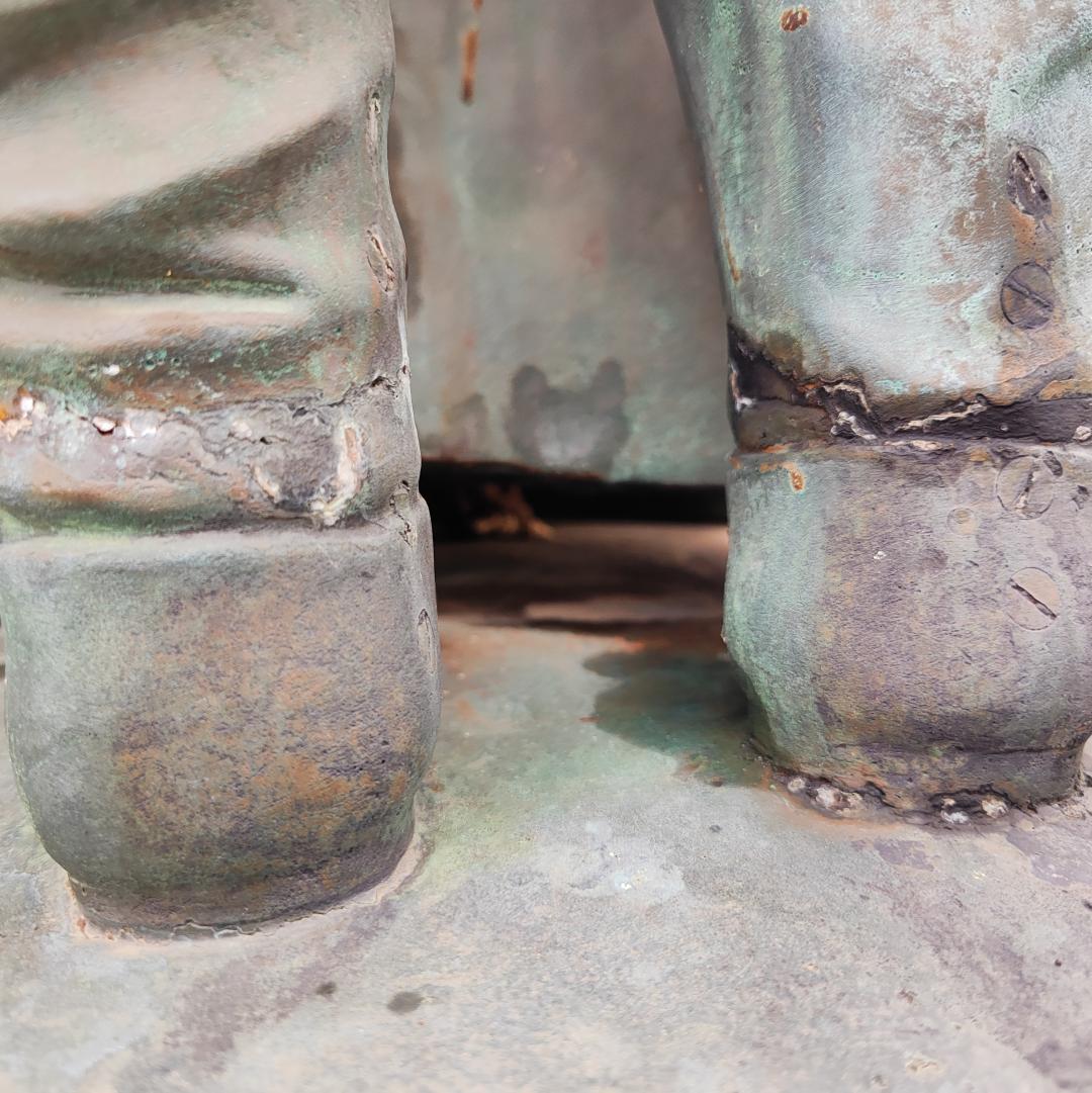 Ce groupe sculpté est constitué d’un assemblage de pièces de bronze.
